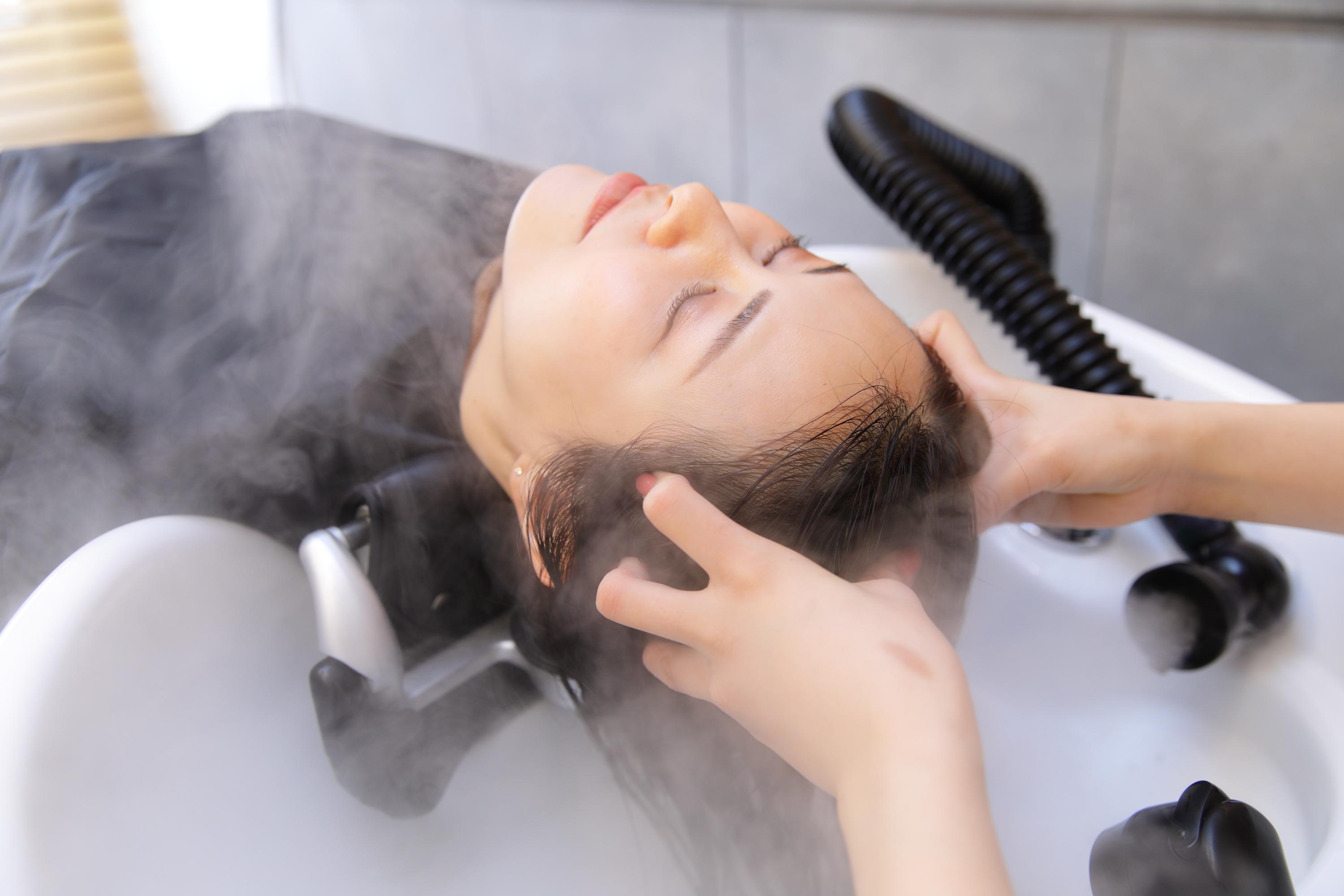髪のボリュームアップを目的としたヘッドスパ。ヘマチン配合のスキャルプクリームを使用し髪にハリ・コシを与えます。